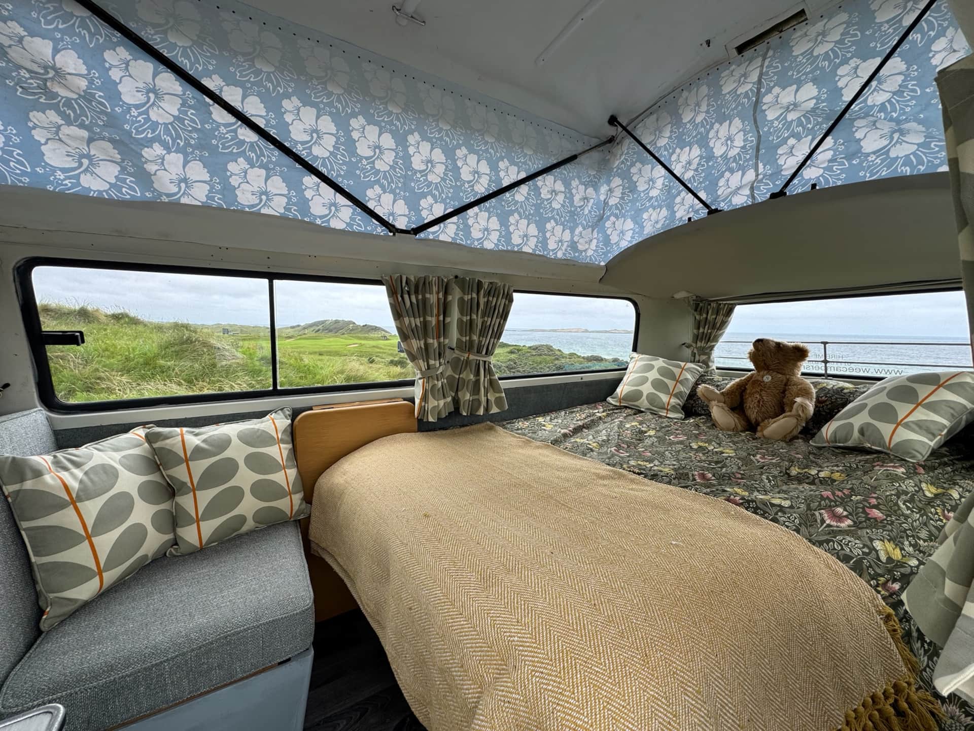 When night falls, it transforms effortlessly into a cosy double bed, giving you a snug and supportive place to unwind after a day on the road. Orla Kiely curtains add a touch of retro elegance to complete the look.